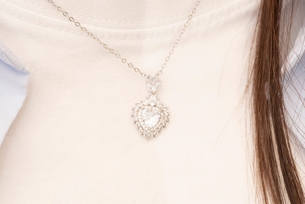 Collana con cuore e pietre color argento.
