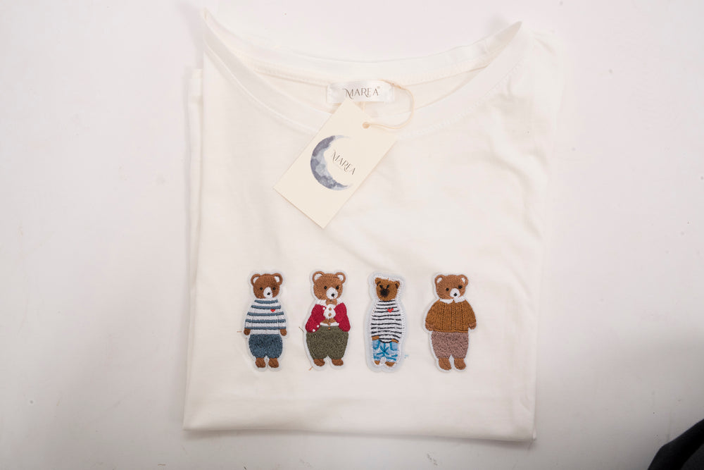 T-shirt bianca con patch orsetti.